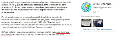 Desde 29 de septiembre hasta 21 de octubre 2017 fue el aviso en la escuela: "...que las inscripciones a 1 Básico 2018 se suspenden..."